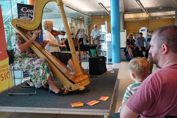 We regularly perform in public spaces, to share the wonderful music this instructment creates, initiating the Music at Midday free concert series, and being active in Make Music Day, June 21st each year.